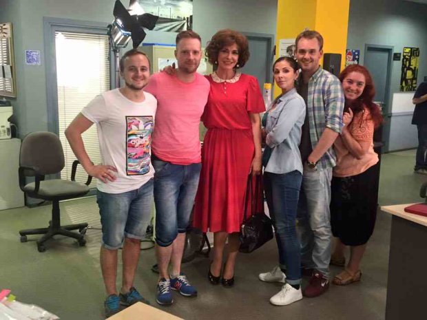 На своей странице в соцсети Сумская выложила фото со съемок, на которых позирует с актером Владимиром Горянским, режиссером сериала Денисом Тарасовым и съемочной группой.